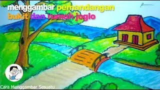 - cara menggambar pemandangan bukit dan rumah joglo