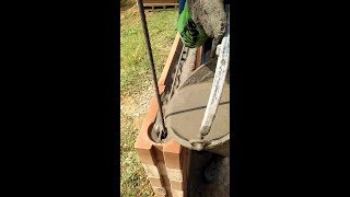 Batu interlocking brick , tahap pengerja\'an dari angkat batu bata , penyusunan batu hingga pengisian semen ,